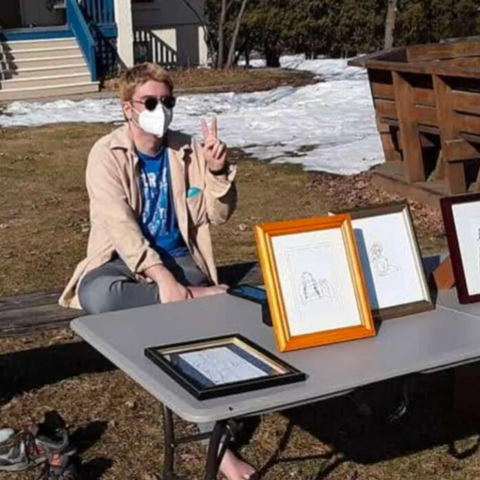Jad Tamari (He/They) is a Palestinian-American graphic designer and painter. He is currently graduating from Southern Illinois University Edwardsville (SIUE), taking classes like figure painting and logo design. Jad's work focuses on an understanding of what makes art engaging and accessible. The painting side of Jad's work is more laid back and abstract, while the graphic design work has a serious look at politics and looking up for the little man.